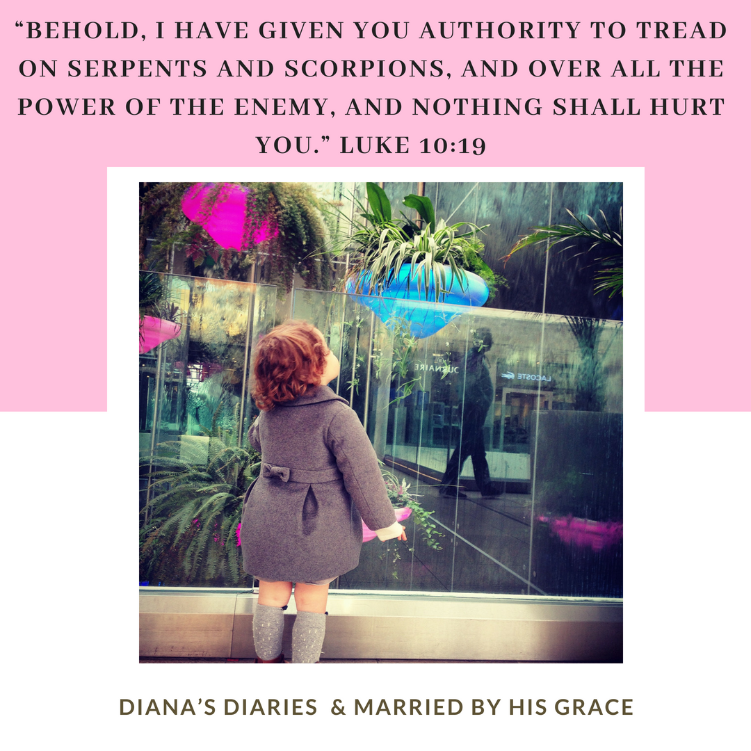 “Behold, I have given you authority to tread on serpents and scorpions, and over all the power of the enemy, and nothing shall hurt you.” Luke 10:19